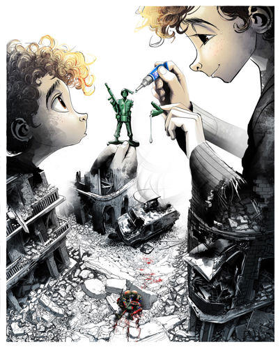 Petro, 40, says he and his older brother, Dmytro, 43, have been “making little models of soldiers together since childhood, and conducting fake wars. Then we grew up and had a different kind of war.” Dmytro says that “in the war, we were always together”. They were together when the drone detonated under their car, killing the other two soldiers with them. The brothers are now recuperating from their injuries in the same hospital, in different wards, but each brother tells their stories mostly about the other.