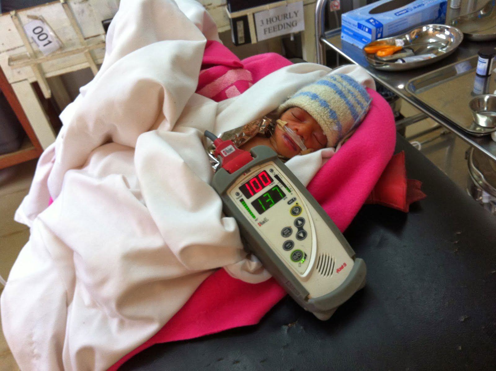 然後便到醫療設備。好在3部製氧機只有2部在使用,那我們可以先把一部駁好,把6號床的寶寶搬過來,再把原先駁給他的那一部搬過來接駁,以預備復甦床上的寶寶搬來。